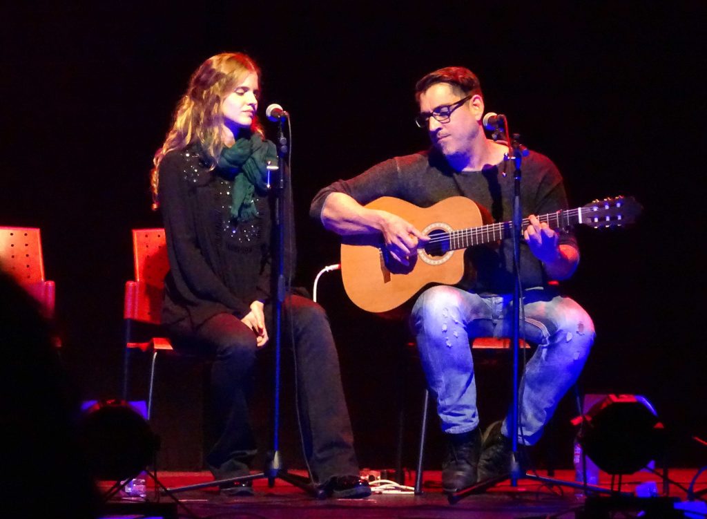 La solidaridad no se alcanza por medio de la investigación ni el conocimiento, sino por medio de la reflexión, el corazón y también la creatividad. Y a esto ayudaron sin duda los dos artistas de la noche. Ambos, y con la preciosa colaboración de la joven Belén Quirós, nos deleitaron y elevaron nuestro espíritu con su música, su voz y sus letras, palabras cargadas de sentimiento y humanidad. Melodías henchidas de mensajes que llegaron a nuestro corazón dispuestos a sacar todo lo que guardamos cuando se reprimen las ganas de llorar o de sonreír si algo toca muy dentro. Tanto las de Pedro Sosa, como las de José Antonio Delgado fueron canciones nacidas desde la profundidad de las vivencias de amor o desamor, tristezas o alegría, solidaridad y fraternidad. Dicen que los buenos compositores, más que buscar la canción perfecta, buscan aquella que sea significativa para ellos. Creo que los dos consiguieron con creces transmitirnos trocitos de sí mismos. Y me atrevería a decir, incluso, que la música es un instrumento clave para la paz.